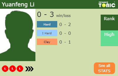 Yuanfeng has a 0-3 win-loss record in 2019, 0-2 on hard (See FULL STATS).