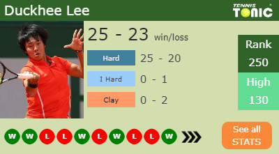 Hee Lee has a 25-23 win-loss record in 2019, 25-20 on hard (See FULL STATS).