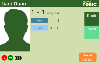 Duan has a 1-1 win-loss record in 2019, 1-1 on hard (See FULL STATS).