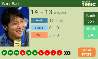 The Chinese has a 14-13 win-loss record in 2019, 11-10 on hard (See FULL STATS).
