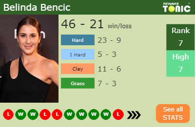 Bencic has a 46-21 win-loss record in 2019, 5-3 on I.hard (See FULL STATS).