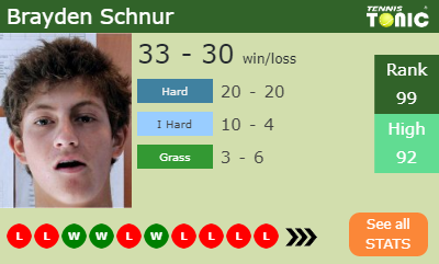 This will be the 2nd time that Brayden Schnur and Evan Song face off. The head to head is 1-0 for Song (see full H2H stats), but they have never played each other on indoor hard courts.
