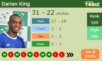 This will be the 6th time that Darian King and Michael Mmoh clash against each other. The head to head is 3-2 for Mmoh (see full H2H stats), 1-0 on indoor hard courts.
