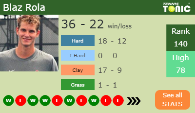 Blaz has a 36-22 win-loss record in 2019, 0-0 on indoor hard courts (See FULL STATS).