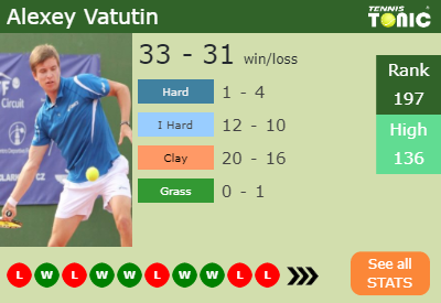 As per the initial odds, Alexey Vatutin is the pick to win this match.
