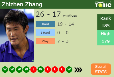 There is no head to head record between Zhizhen Zhang and Borna Gojo since this will be the first time that they will play each other in the main tour.