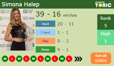 Halep has a 39-16 win-loss record in 2019, 1-1 on indoor hard courts (See FULL STATS).