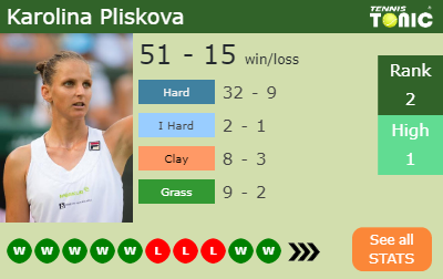 Karolina has a 51-15 win-loss record in 2019, 2-1 on indoor hard courts (See FULL STATS).