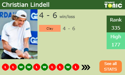 Lindell has a 4-6 win-loss record in 2019, 4-6 on clay (See FULL STATS).