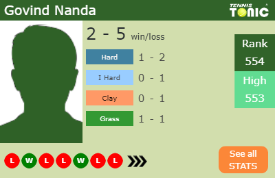 Nanda has a 2-5 win-loss record in 2019, 0-1 on indoor hard courts (See FULL STATS).