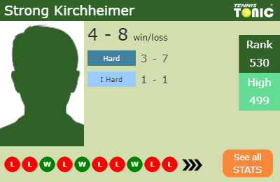 Ranked no. 530, Kirchheimer will start his run in Knoxville Challenger after he played his last match in Fairfield Challenger where he lost 6-75 6-3 6-4 to King in the 1st round the 7th of October.