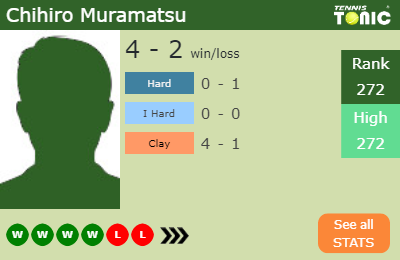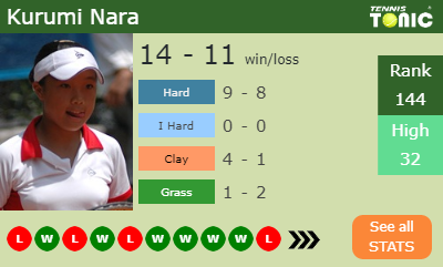 This will be the 2nd time that Kurumi Nara and Chihiro Muramatsu square off. The head to head is 1-0 for Nara (see full H2H stats), but they have never competed against each other on hard.