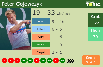 Peter has a 19-33 win-loss record in 2019, 6-5 on indoor hard courts (See FULL STATS).