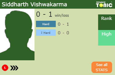 Siddharth has a 0-1 win-loss record in 2019, 0-1 on hard (See FULL STATS).