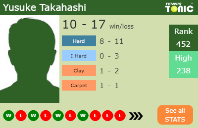 Takahashi has a 10-17 win-loss record in 2019, 8-11 on hard (See FULL STATS).