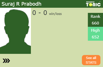 R Prabodh has a 0-0 win-loss record in 2019, 0-0 on hard (See FULL STATS).