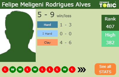 Meligeni Rodrigues Alves has a 5-9 win-loss record in 2019, 1-3 on hard (See FULL STATS).