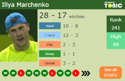 Illya has a 28-17 win-loss record in 2019, 12-3 on indoor hard courts (See FULL STATS).