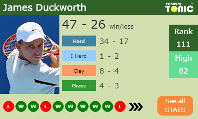 The pick for Tennis Tonic is James Duckworth who should win in 2 sets.
