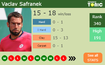 Vaclav has a 15-18 win-loss record in 2019, 0-3 on indoor hard courts (See FULL STATS).