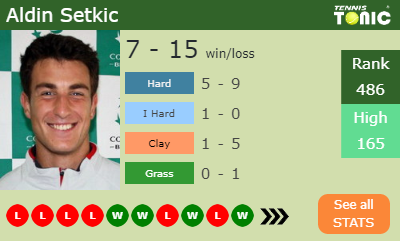 Aldin has a 7-15 win-loss record in 2019, 1-0 on indoor hard courts (See FULL STATS).