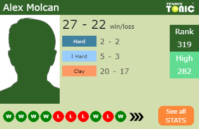 Molcan has a 27-22 win-loss record in 2019, 5-3 on indoor hard courts (See FULL STATS).