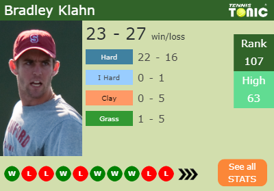 Klahn has a 23-27 win-loss record in 2019, 22-16 on hard (See FULL STATS).