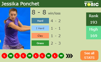 Ponchet has a 8-8 win-loss record in 2019, 4-2 on hard (See FULL STATS).