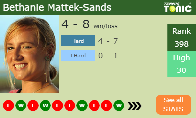 See updated oddsAs per the initial odds, Bethanie Mattek-Sands is the pick to win this match.
