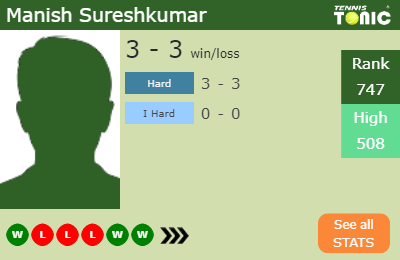 - Manish SureshkumarSureshkumar – James DuckworthDuckworth (0-0) – See H2H details