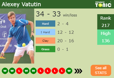 The last time that they competed against each other, Vatutin won 6-1 5-7 6-2 in the qualifications in at the Australian Open back in 2018.