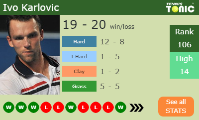 Ivo has a 19-20 win-loss record in 2019, 12-8 on hard (See FULL STATS).