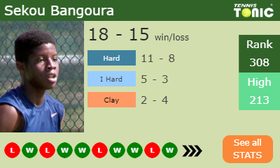 Bangoura has a 18-15 win-loss record in 2019, 11-8 on hard (See FULL STATS).