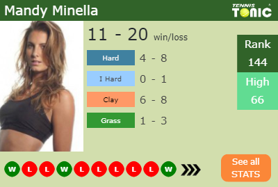 Minella has a 11-20 win-loss record in 2019, 4-8 on hard (See FULL STATS).