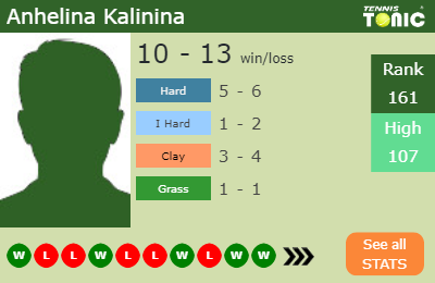 Anhelina has a 10-13 win-loss record in 2019, 5-6 on hard (See FULL STATS).