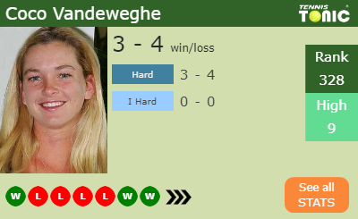 Vandeweghe has a 3-4 win-loss record in 2019, 3-4 on hard (See FULL STATS).