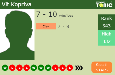 Kopriva has a 7-10 win-loss record in 2019, 7-8 on clay (See FULL STATS).