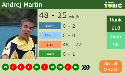 Andrej has a 48-25 win-loss record in 2019, 48-22 on clay (See FULL STATS).
