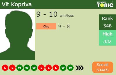 Vit has a 9-10 win-loss record in 2019, 9-8 on clay (See FULL STATS).