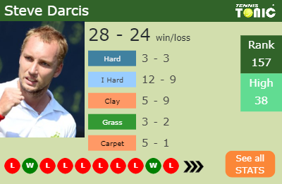 Darcis has a 28-24 win-loss record in 2019, 3-3 on hard (See FULL STATS).