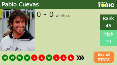 - Nikoloz BasilashviliBasilashvili – Pablo CuevasCuevas (1-1) – See H2H details