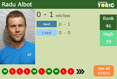 The Moldovan has a 0-1 win-loss record in 2020, 0-1 on hard (See FULL STATS).