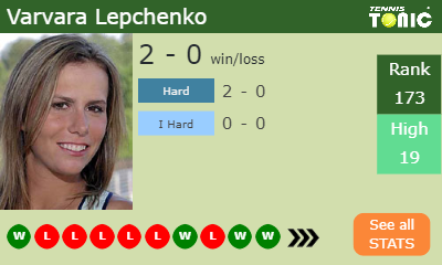 The American has a 2-0 win-loss record in 2020, 2-0 on hard (See FULL STATS).