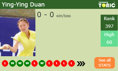 Duan has a 0-0 win-loss record in 2020, 0-0 on hard (See FULL STATS).