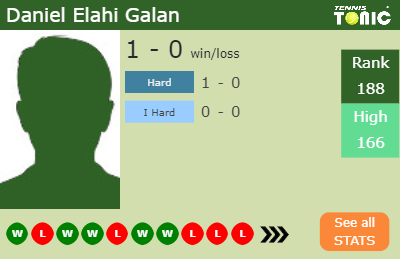 The Colombian has a 1-0 win-loss record in 2020, 1-0 on hard (See FULL STATS).