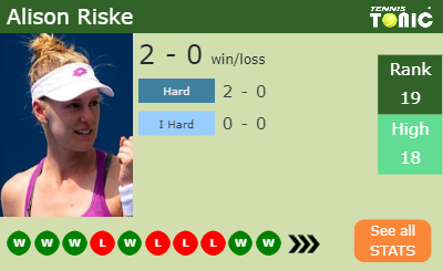- Alison RiskeRiske – Karolina PliskovaPliskova (0-6) – See H2H details