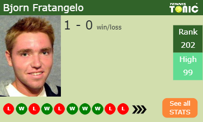 Fratangelo has a 1-0 win-loss record in 2020, 1-0 on indoor hard courts (See FULL STATS).