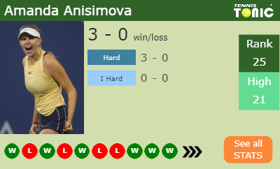 Amanda has a 3-0 win-loss record in 2020, 3-0 on hard (See FULL STATS).