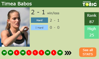 Timea has a 2-1 win-loss record in 2020, 2-1 on hard (See FULL STATS).