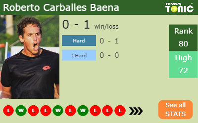 The Spaniard has a 0-1 win-loss record in 2020, 0-1 on hard (See FULL STATS).